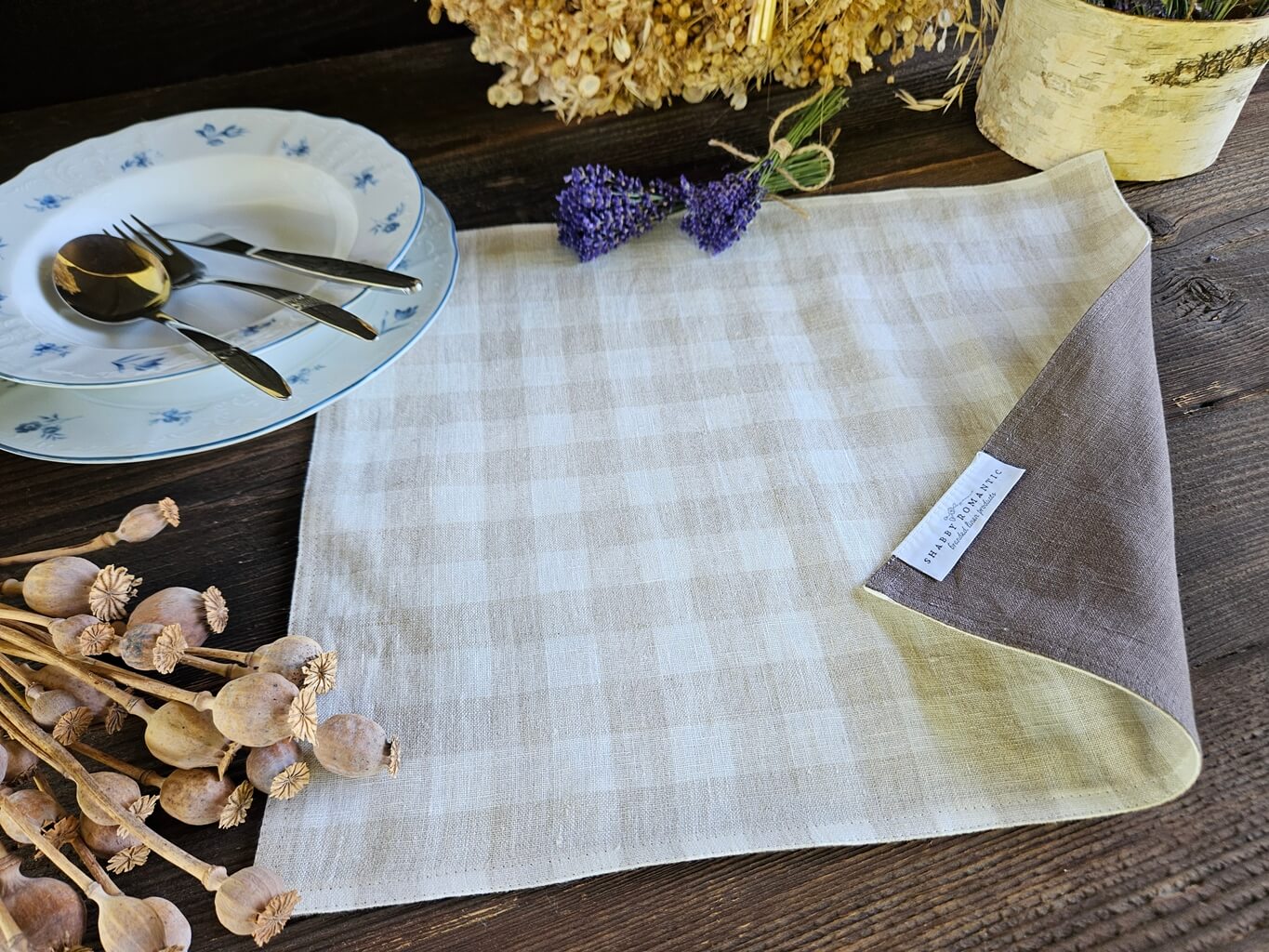 Stačí ich otočiť a zmeniť celý vzhľad stola. Z jednej strany naturálna jednoduchosť čistého ľanu, z druhej jemné odtiene, prúžky, štvorčeky či bodky. Každá kombinácia nesie svoj vlastný charakter – od pokojnej elegancie až po hravú jemnosť.