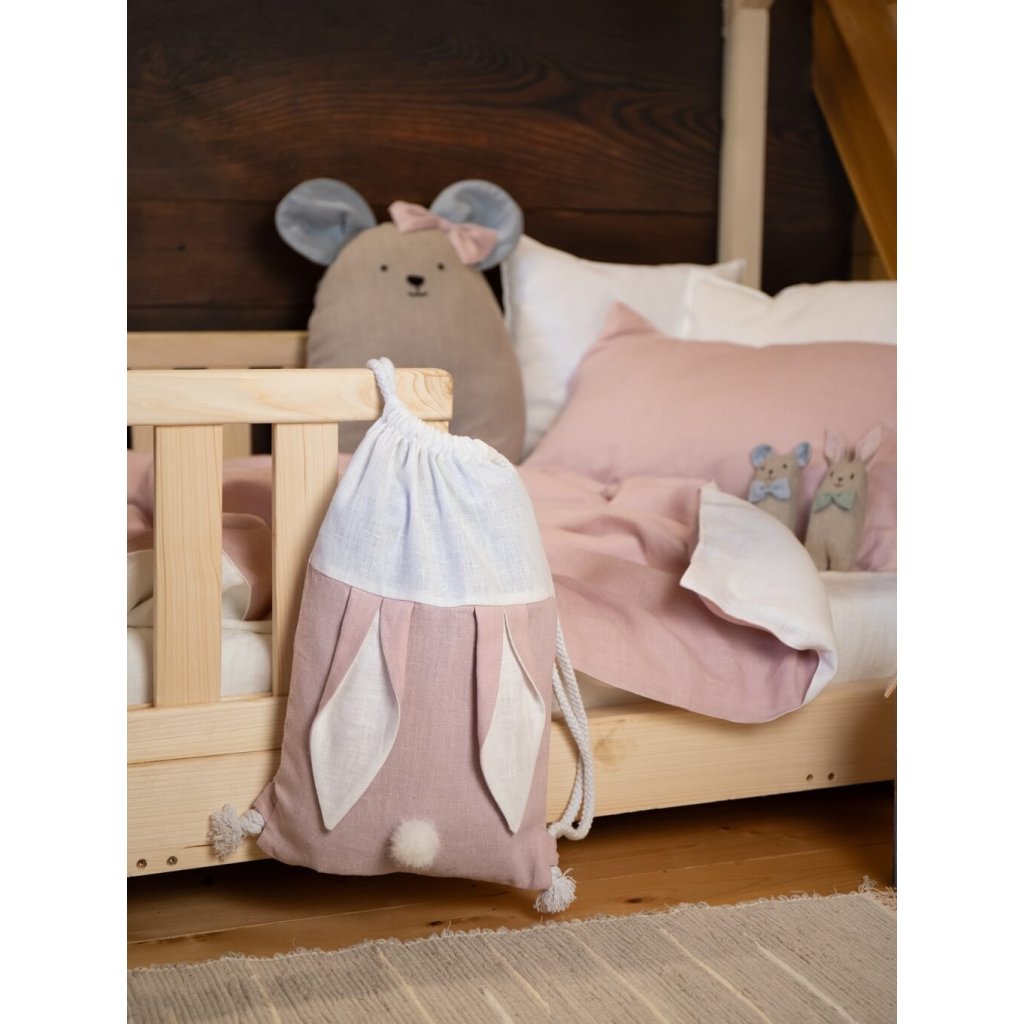 Celý set krásne dopĺňa ľanový ruksak so zajačími uškami a chvostíkom, do ktorého môžete obliečky jednoducho vložiť.