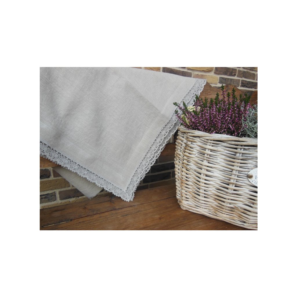 Ľanový obrus v natur štýle z kolekcie Pure Beauty je ušitý z kvalitného 100%-ného ľanu, olemovaný vkusnou paličkovanou krajkou - tón v tóne.