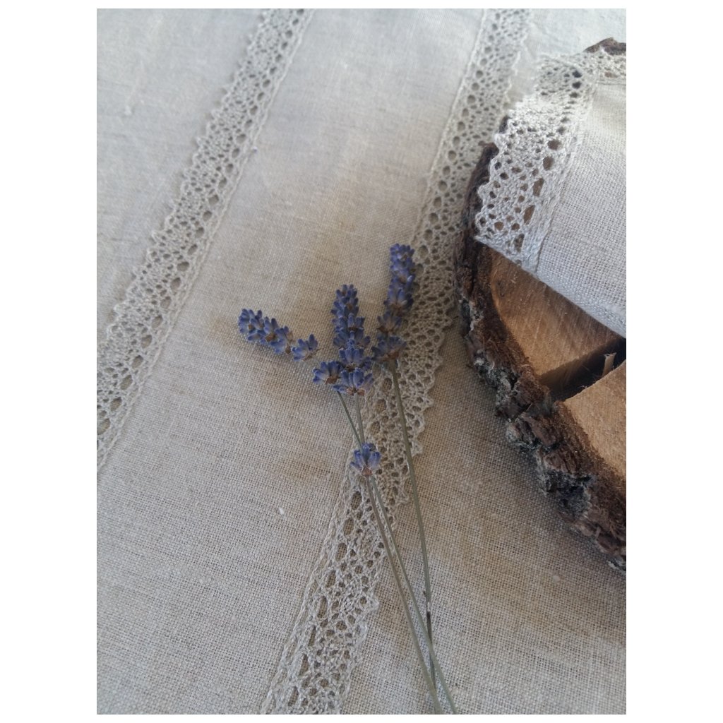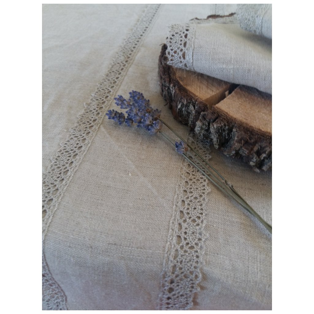 Je ušitý z kvalitného 100%-ného ľanu natur farby a doplnený 100% ľanovou krajkou.