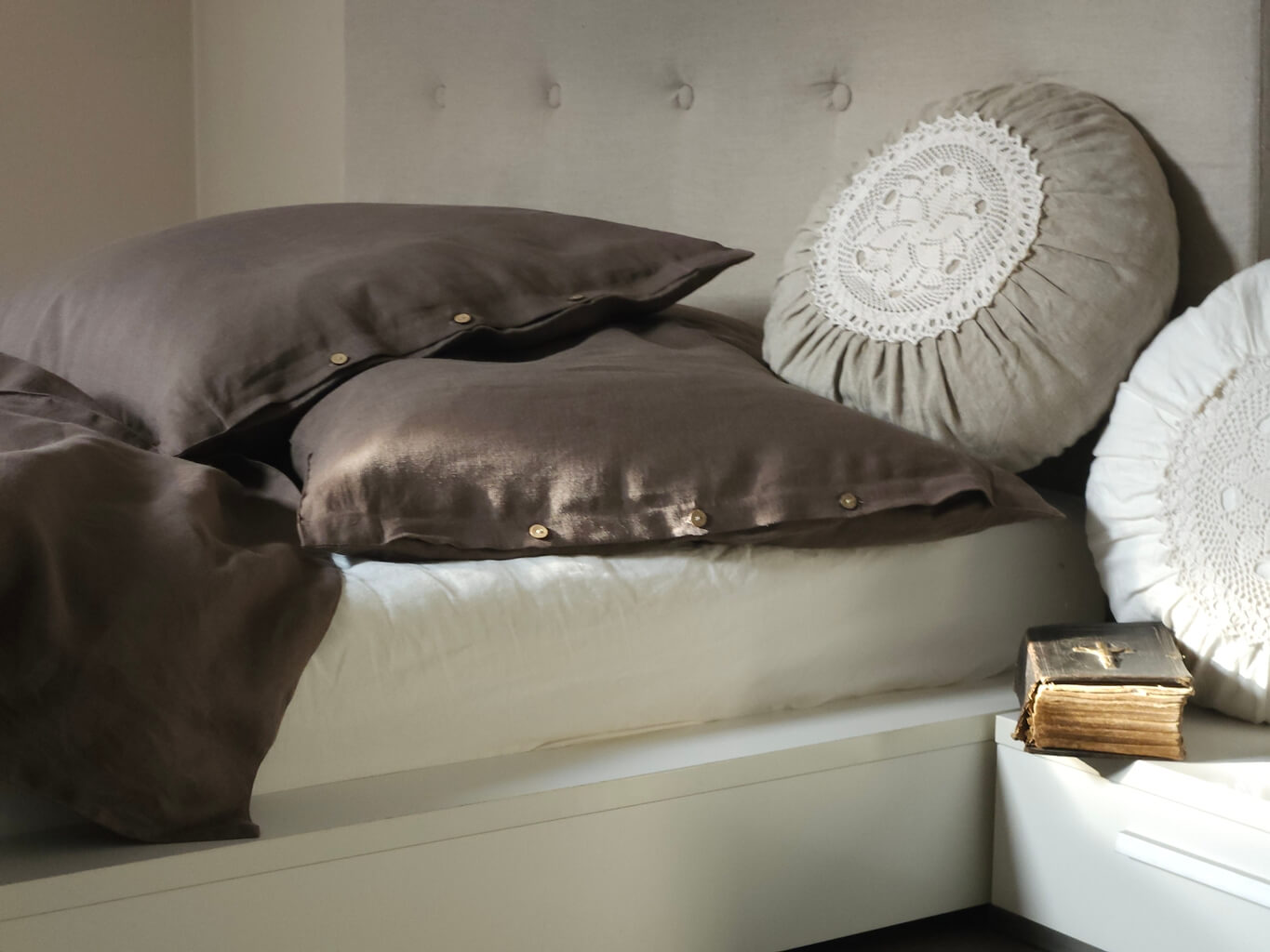 Tentokrát sme siahli po hriešnej čokoládovo hnedej. Posteľné obliečky dostali názov Chocolate Story.