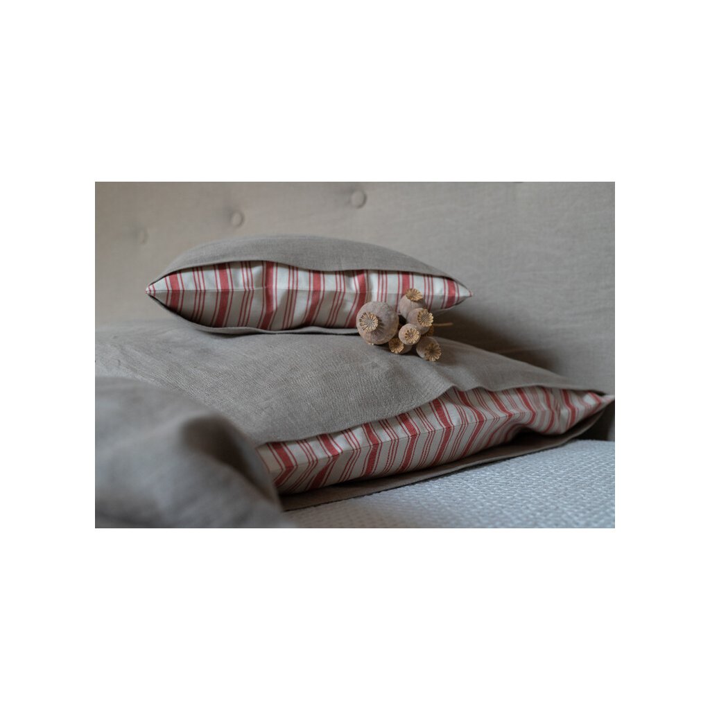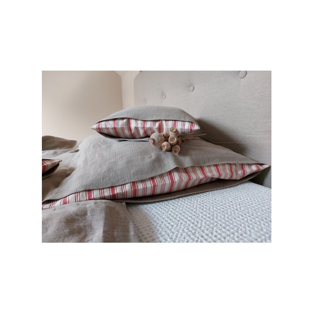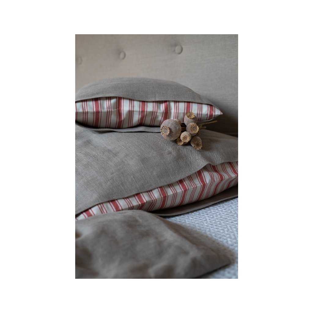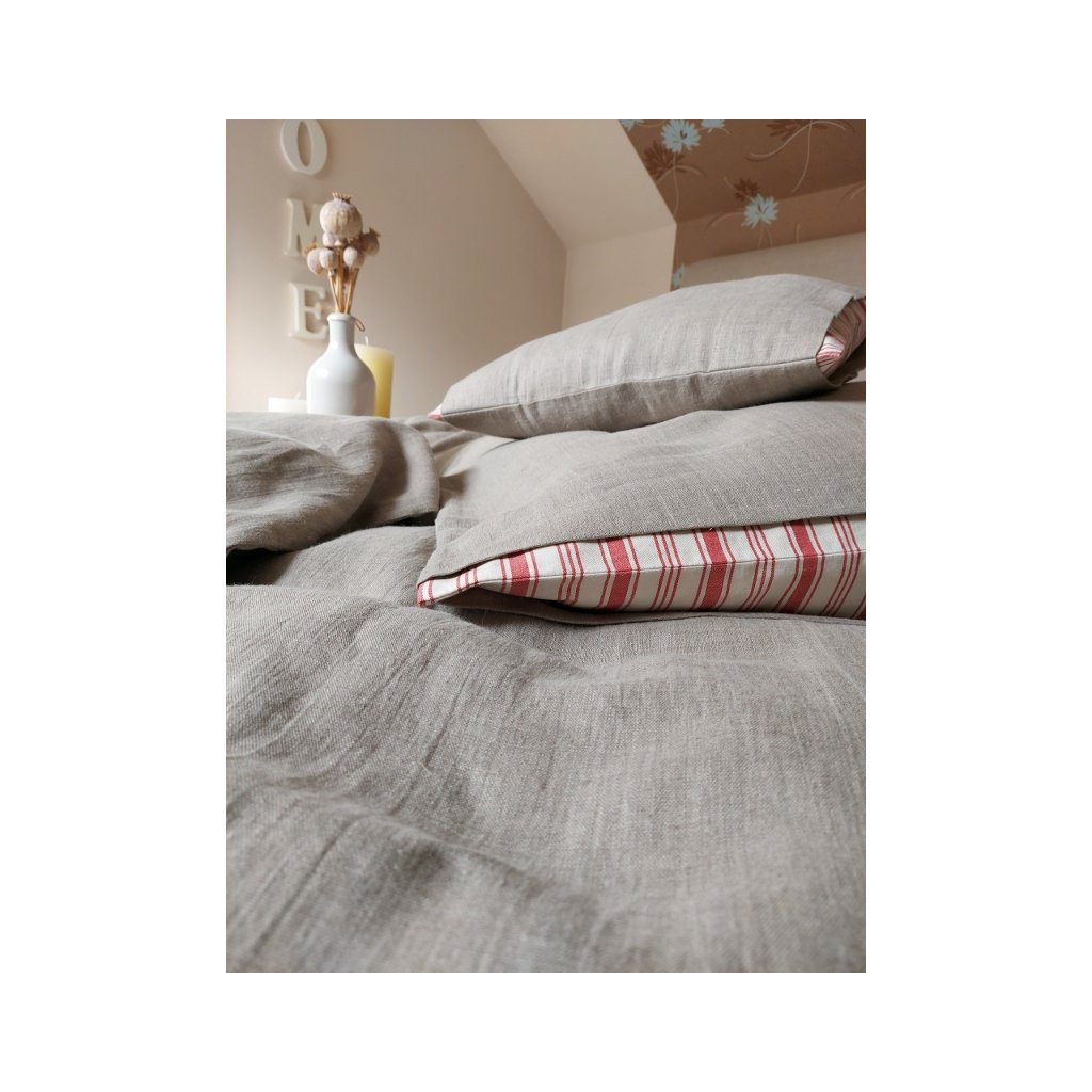 Ľanové posteľné obliečky Linen Love sú ušité z prírodného ľanu v natur farbe, v kombinácii s kvalitným pruhovaným kanafasom.