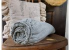 Predná strana obliečky na paplón a vankúš je ušitá z ľanu z prúžkovaným vzorom.
