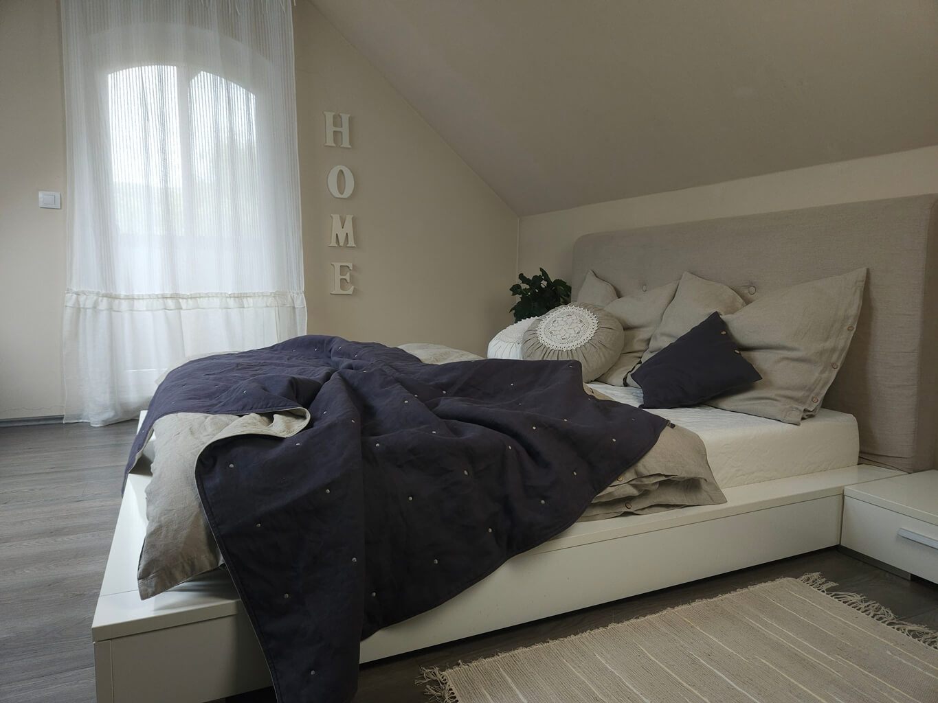 Na jej výrobu sme použili čistý, prírodný ľan z oboch strán. Výplň je hrejivá, bavlnená.