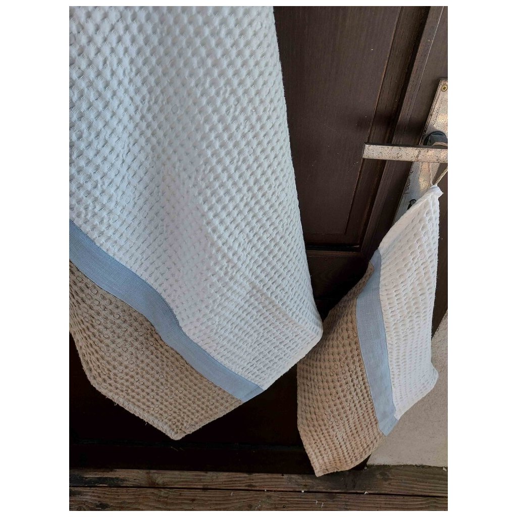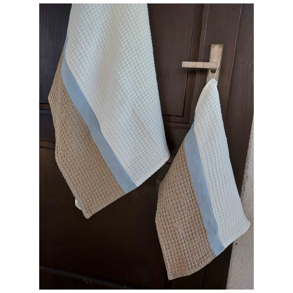 Tieto kúpelňové doplnky sú ušité zo špeciálne tkanej a vysoko kvalitnej ľanovo bavlnenej látky, ktorá je praná a mäkčená.