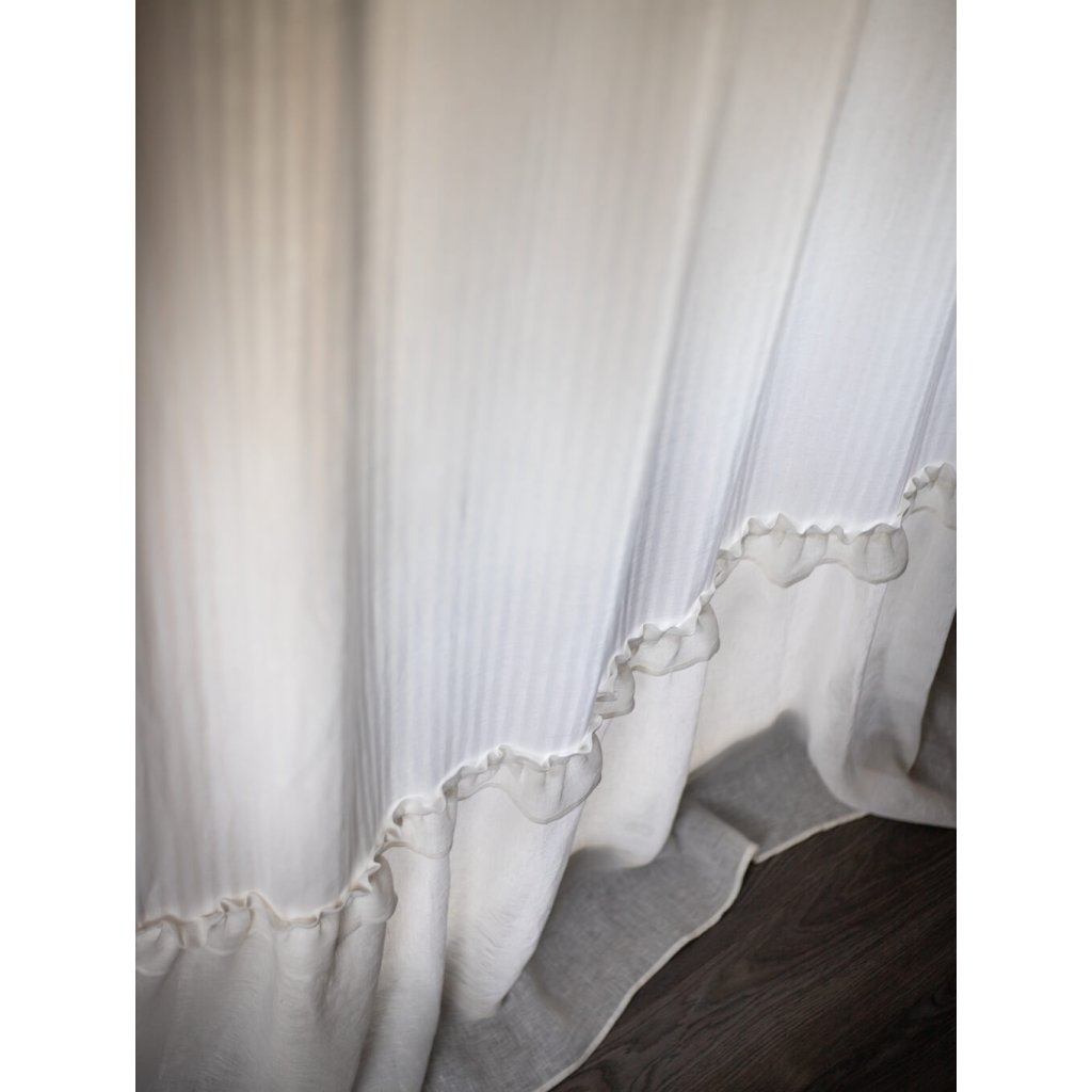 Široký volán ( cca 70 cm dlhý) je ušitý zo 100% ľanovej záclonoviny.